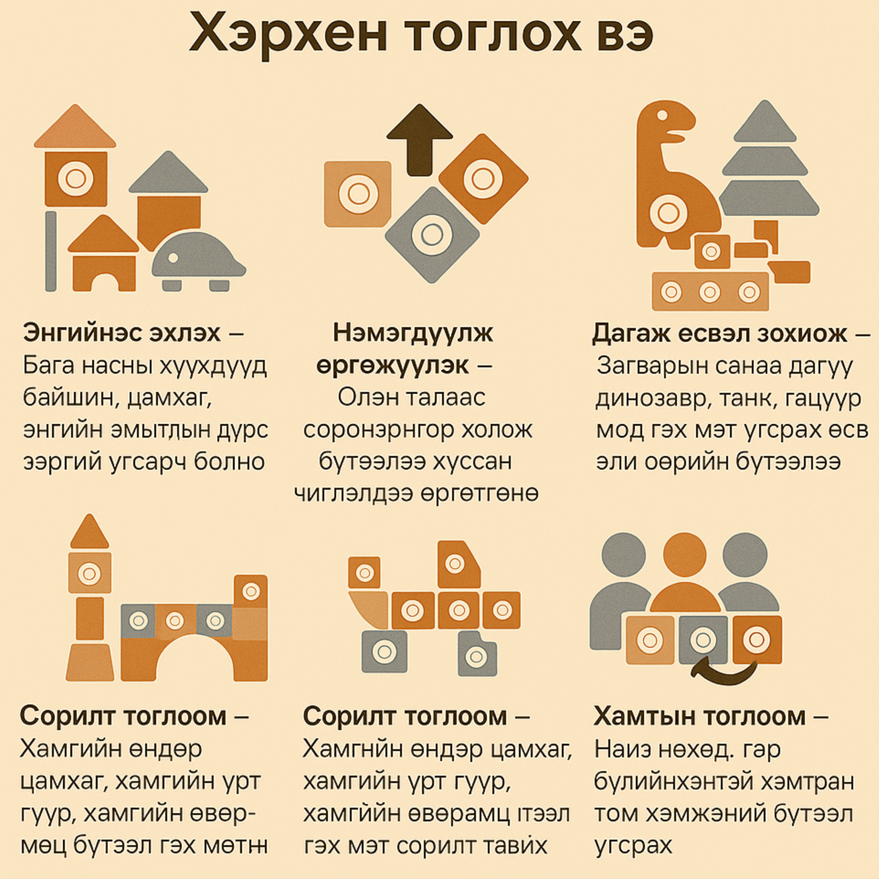 - Асуудал шийдвэрлэх чадварыг нэмэгдүүлнэ – Тогтвортой, тэнцвэртэй бүтцийг угсрах замаар төлөвлөлт болон шийдвэр гаргах ур чадварыг хөгжүүлнэ.